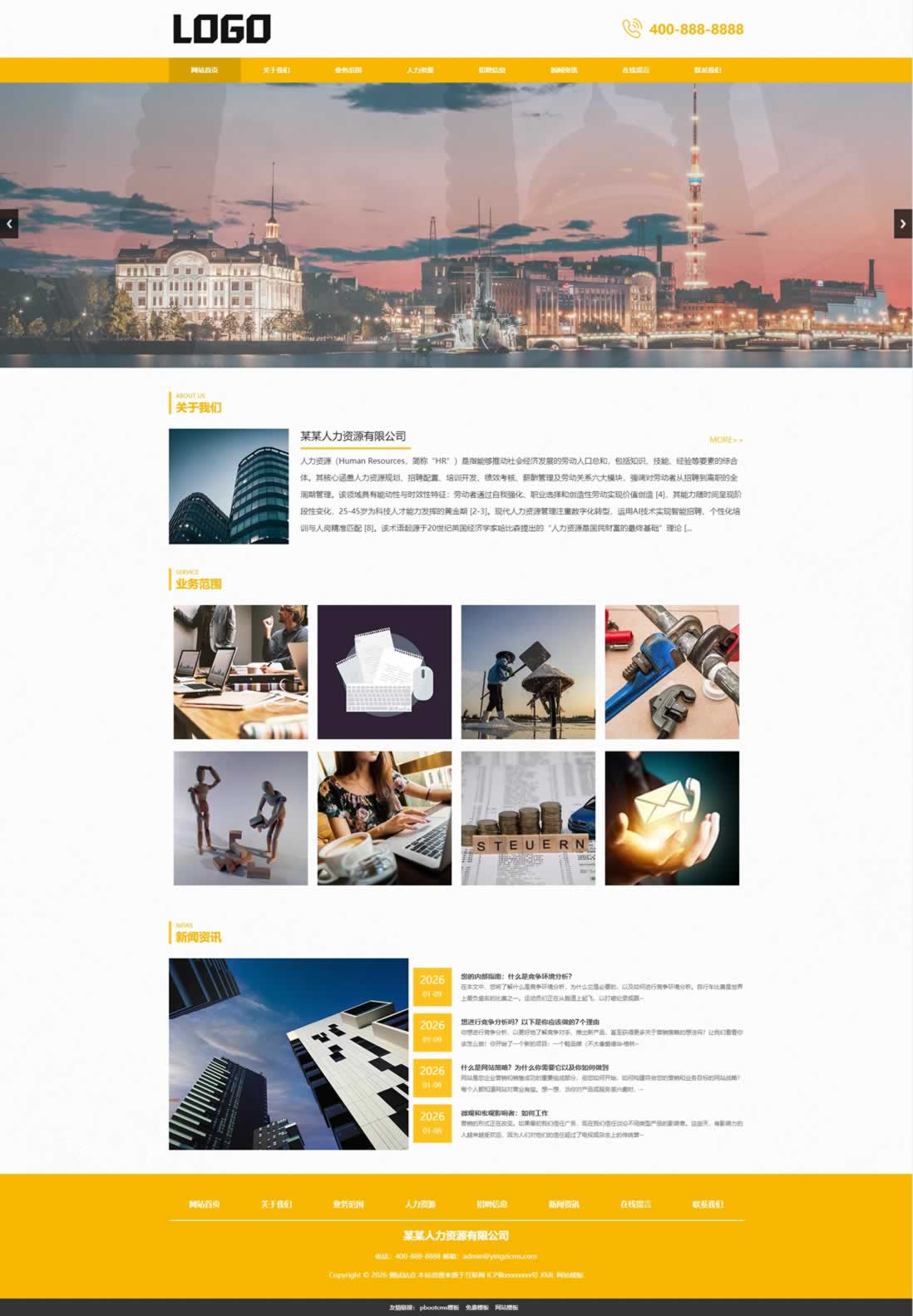 PbootCMS内核开发的模板,该模板属于人力资源、人才招聘类企业使用!