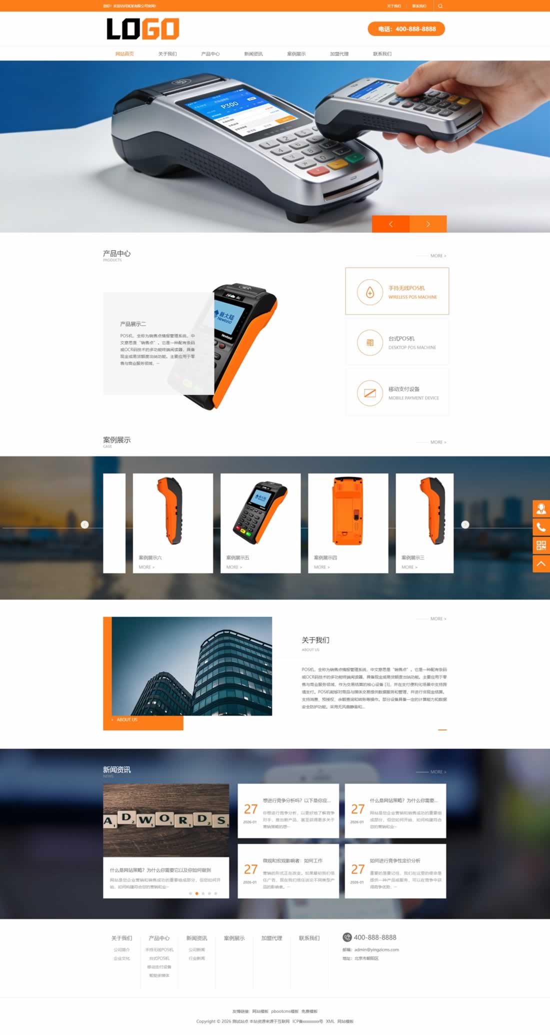 PbootCMS内核开发的模板,该模板属于电子设备、刷卡机类企业使用!